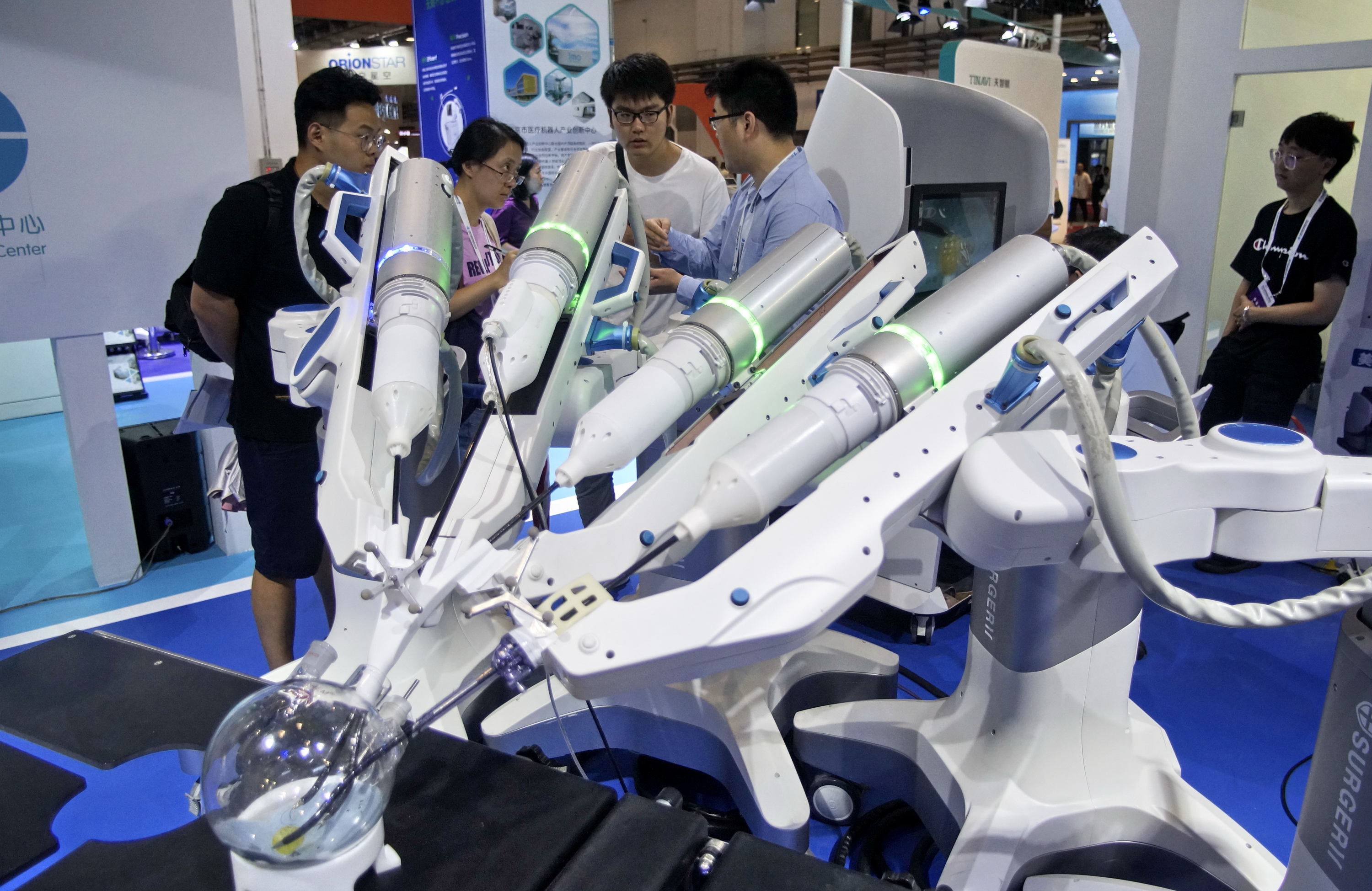 A robot for medical use at the 2019 World Robot Conference in Daxing District of Beijing. (Xinhua/Li Xin)