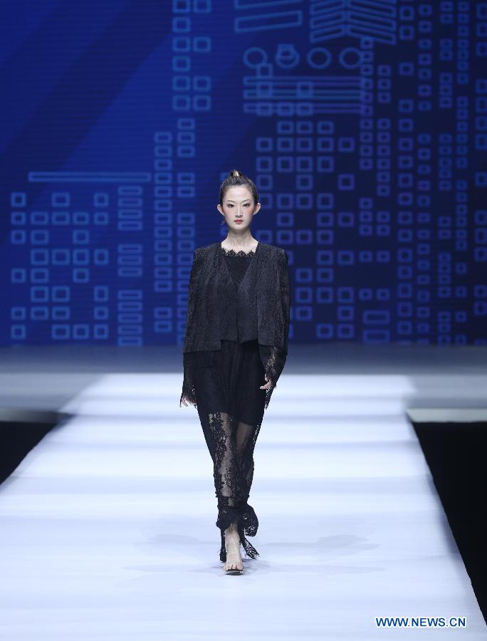 A model presents a creation during the 30th China (Dalian) International Garment and Textile Fair in Dalian, northeast China's Liaoning Province, Sept. 7, 2019. The fair started in Dalian on Saturday. (Xinhua/Long Lei)