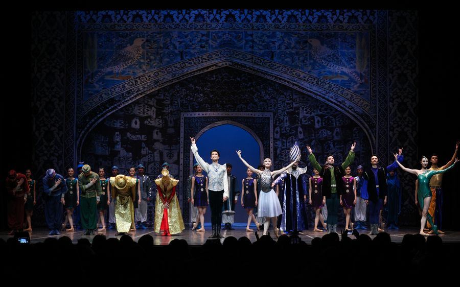 An artist dances during the ballet "The Last Mission of Marco Polo" at the Royal Circus in Brussels, Belgium, on Sept. 11, 2019. Performed by China's Shanghai Ballet, the show was organized by the Chinese Embassy in Belgium and the Chinese Mission to the European Union to celebrate the 70th anniversary of the founding of the People's Republic of China. (Xinhua/Zheng Huansong)