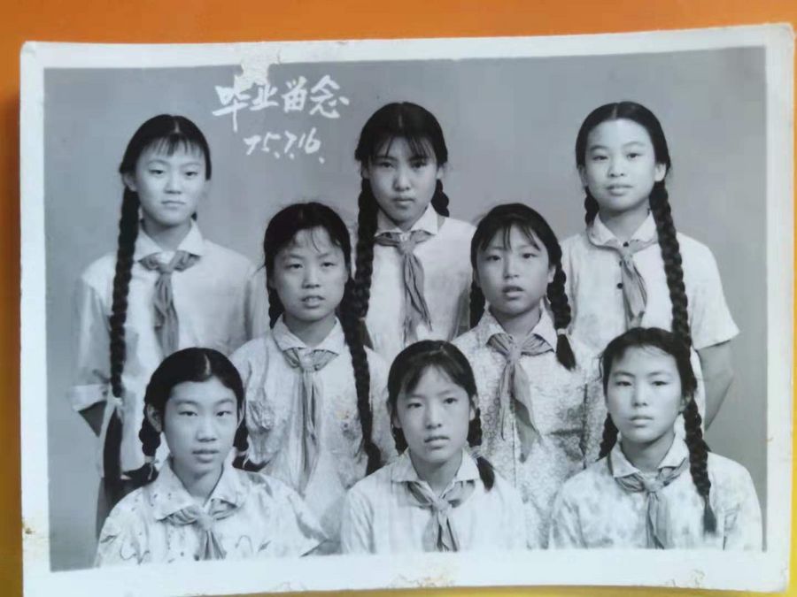 A group of primary school students posed for a photo to mark their graduation in the 1970s. (Photo provided to Xinhua)