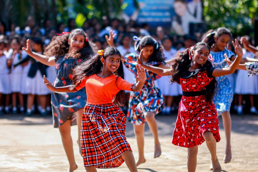 Girls dance to celebrate Children's Day at Gothami Balika Vidyalaya in Colombo, Sri Lanka, on October 1, 2019. (Photo by Gayan Sameera/Xinhua)