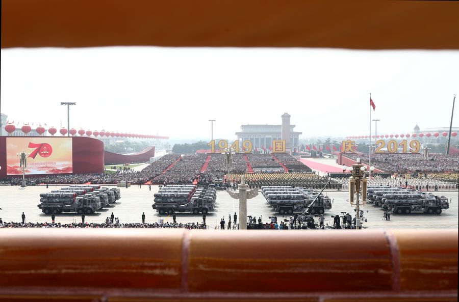 A formation of Dongfeng-5B nuclear missiles takes part in a military parade celebrating the 70th founding anniversary of the People's Republic of China (PRC) in Beijing, capital of China, Oct. 1, 2019. (Xinhua/Cheng Min)