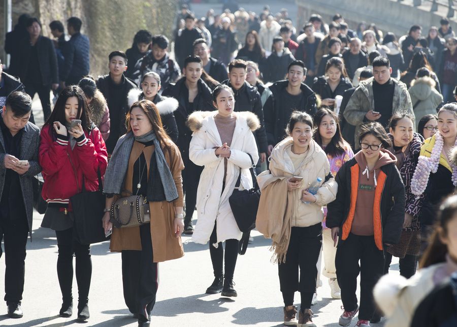 Candidates walk in the campus of Nanjing University of the Arts in Nanjing, east China's Jiangsu Province, Jan. 15, 2018. Some 2,300 students are expected to enroll from a total of 56,800 candidates in undergraduate degrees. (Xinhua/Su Yang)