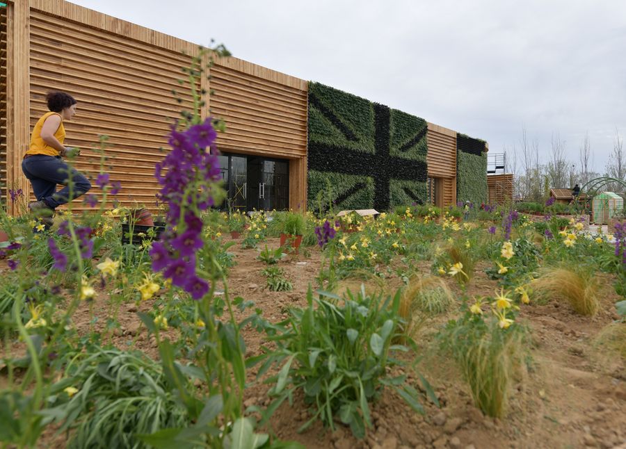 Photo taken on April 18, 2019 shows the UK Garden of the 2019 Beijing International Horticultural Exhibition in Yanqing District of Beijing, capital of China. (Xinhua/Li He)