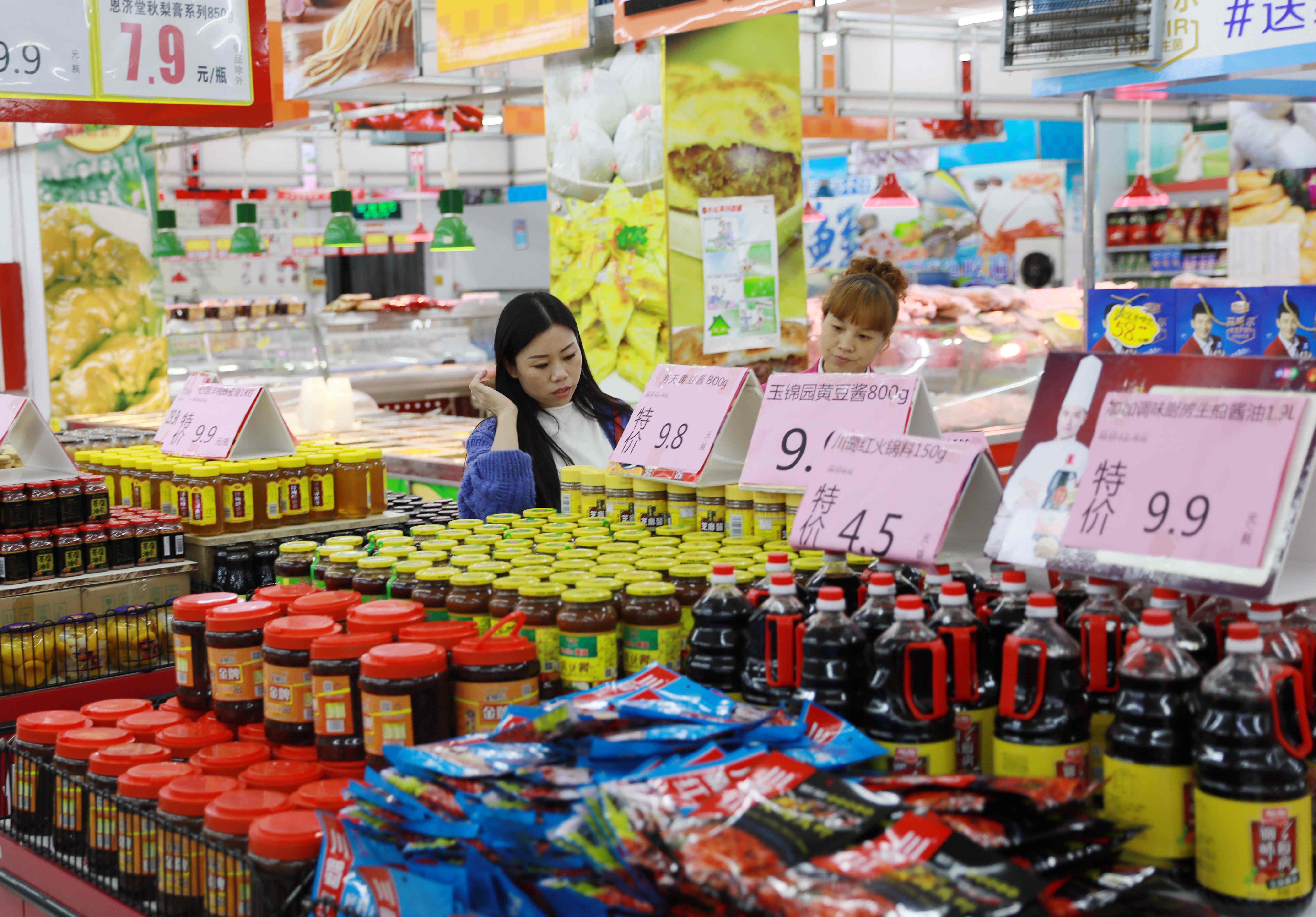 A customer selects goods at a supermarket in Xingtai, north China's Hebei Province, Oct. 15, 2019. (Xinhua/Song Jie)