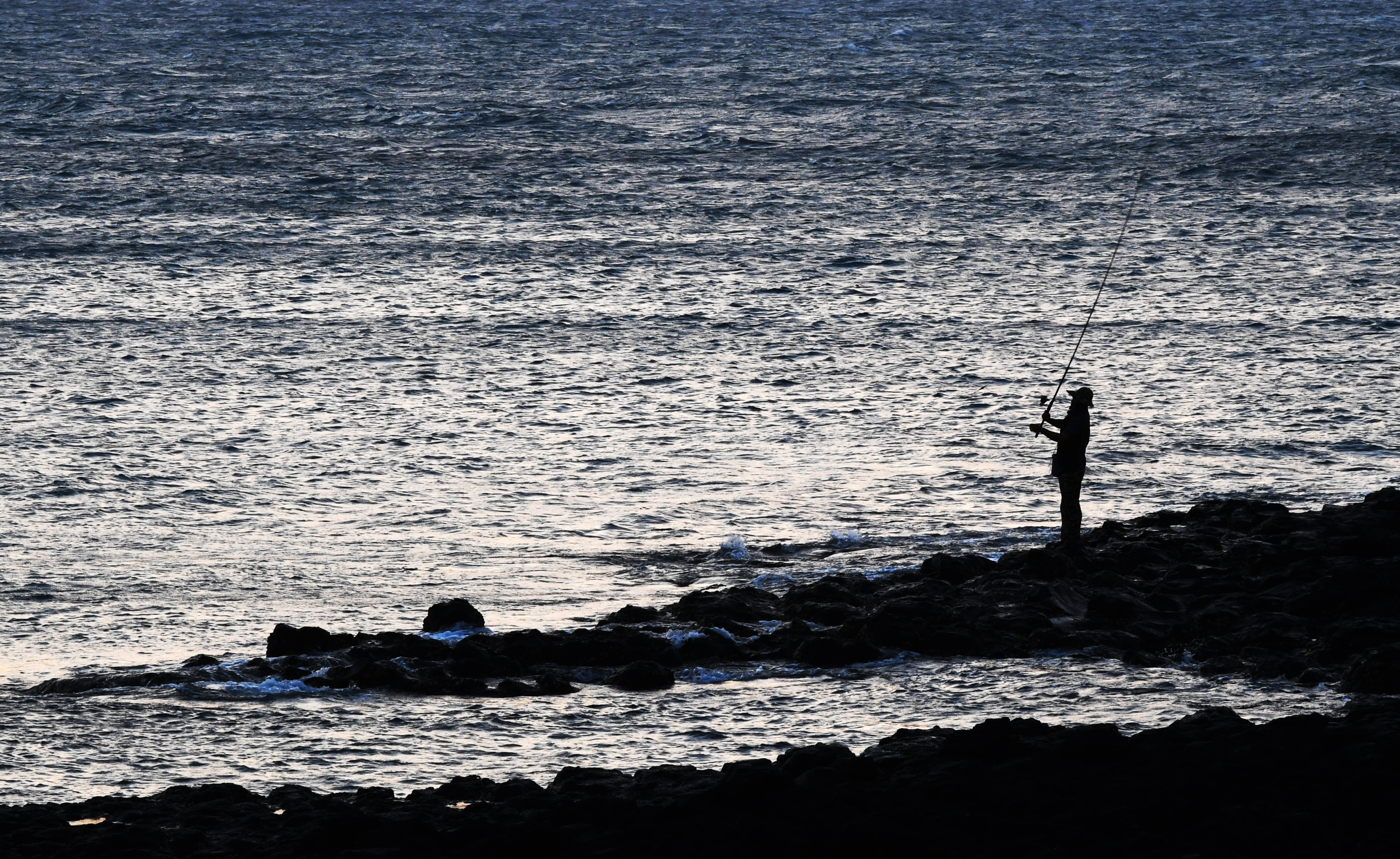A man fishes by the sea at dusk in Magong, Penghu County of southeast China's Taiwan, Nov. 1, 2019. (Xinhua/Chen Bin)
