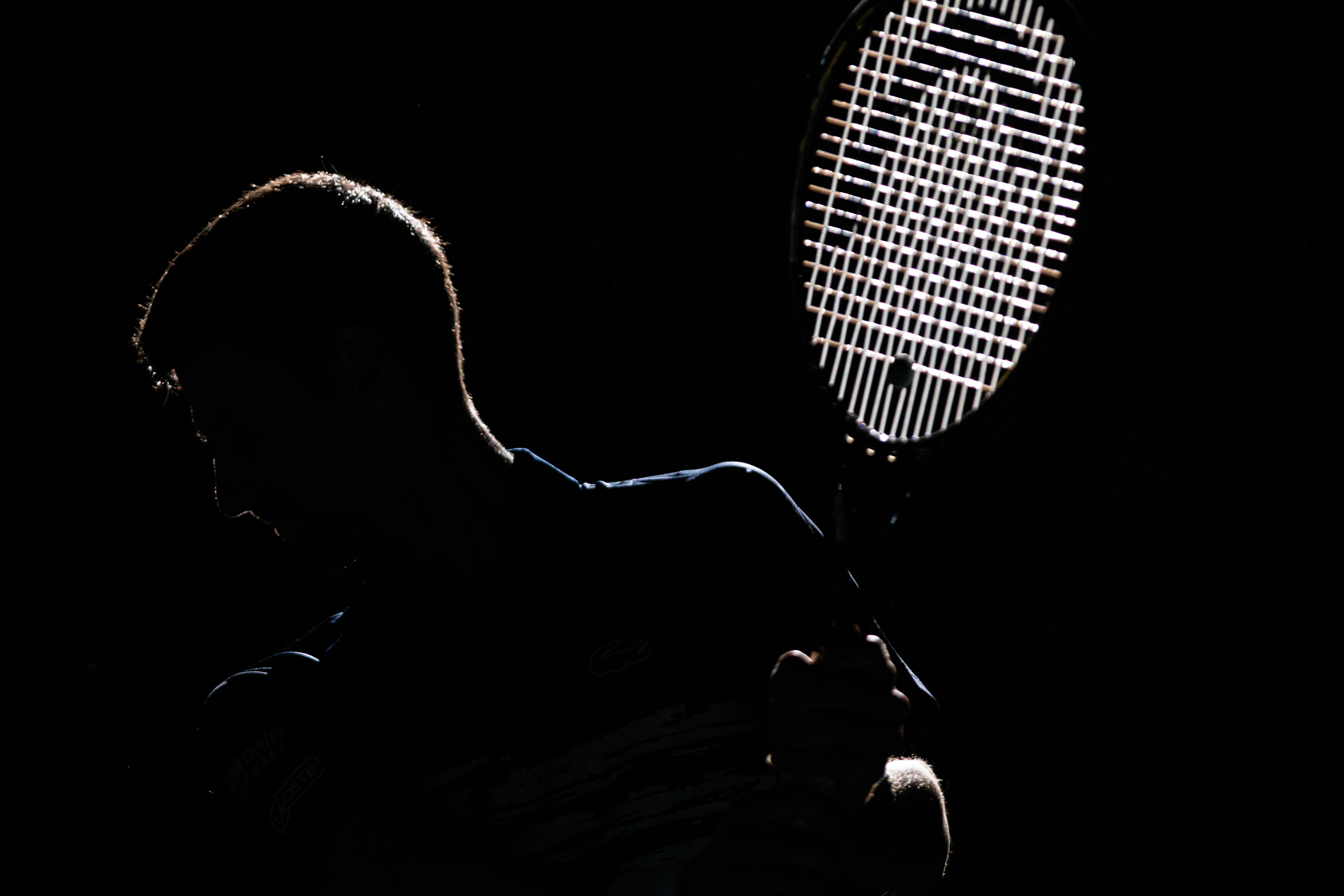 Novak Djokovic of Serbia warms up before the singles quarter-final match against Stefanos Tsitsipas of Greece at the Rolex Paris Masters 1000 held at the AccorHotels Arena in Paris, France, Nov. 1, 2019. (Photo by Aurelien Morissard/Xinhua)