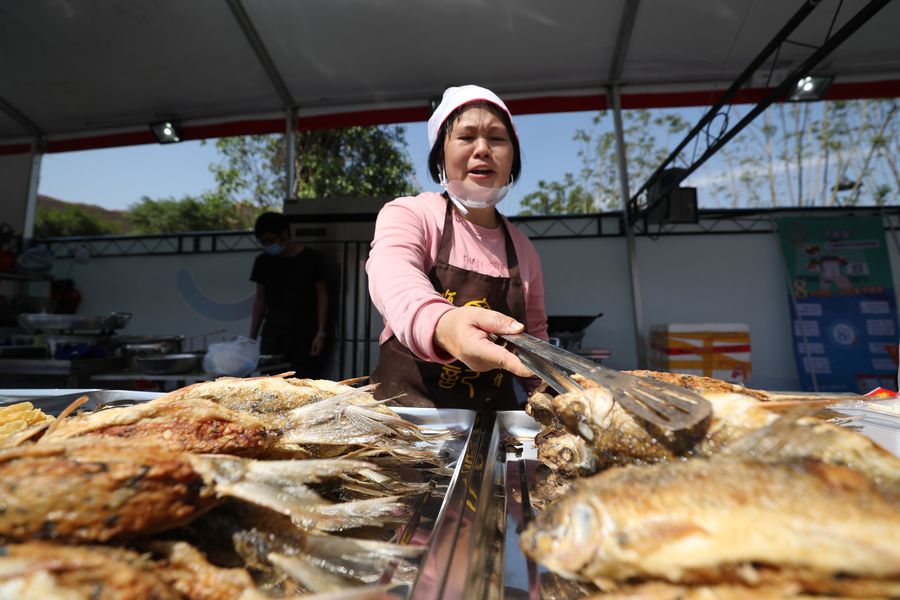 Fried fish at the food culture week in Foshan, Nov. 1, 2019. (Xinhua/Lu Ye)