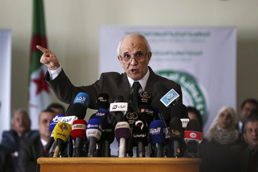 Mohamed Chorfi, head of the Algerian Independent Election Monitoring Authority (NIEMA), speaks at a press conference in Algiers, Algeria, on Nov. 2, 2019. The Algerian Independent Election Monitoring Authority (NIEMA) on Saturday announced that five candidates out of 23 have been approved to run for the presidential election on Dec. 12. (Xinhua)