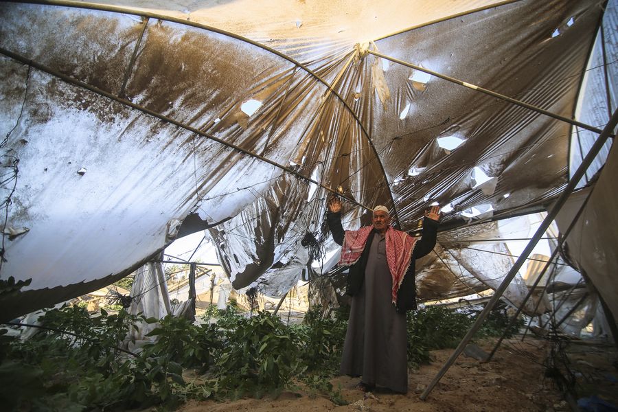 A Palestinian inspects the rubbles following an Israeli airstrike, in the southern Gaza Strip city of Khan Younis, Nov. 2, 2019. A Palestinian man was killed and two others wounded Saturday as Israeli warplanes pounded militants' facilities in the Hamas-ruled Gaza Strip in response to earlier rocket fire. (Photo by Khaled Omar/Xinhua)