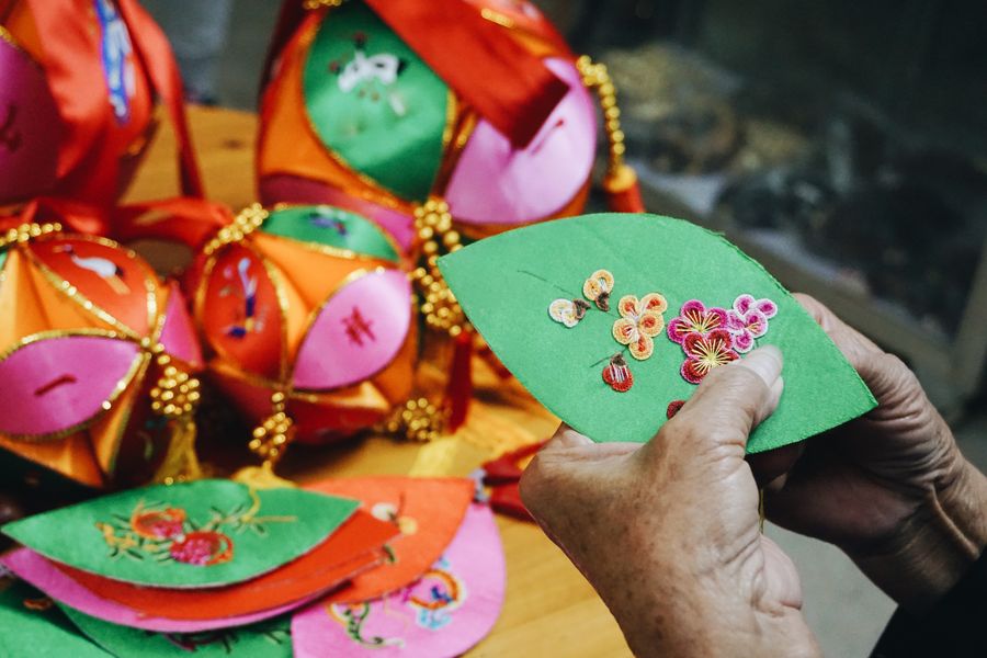 Chinese embroidered balls shine in Jiuzhou, south China's Guangxi