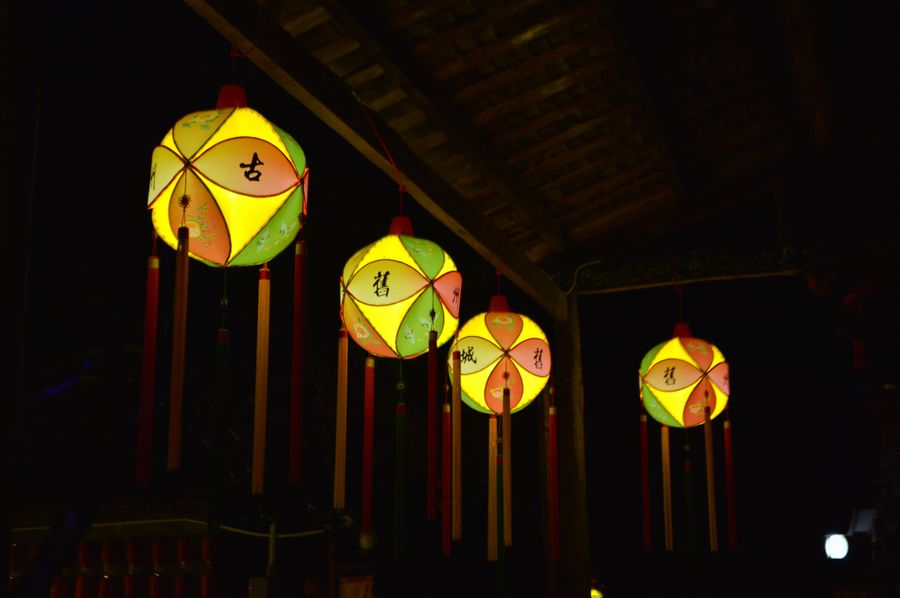 Photo taken on Nov. 4, 2019 shows embroidered ball-shaped lanterns in Jiuzhou ancient town of Jingxi City, south China's Guangxi Zhuang Autonomous Region. (Xinhua/Cui Bowen)