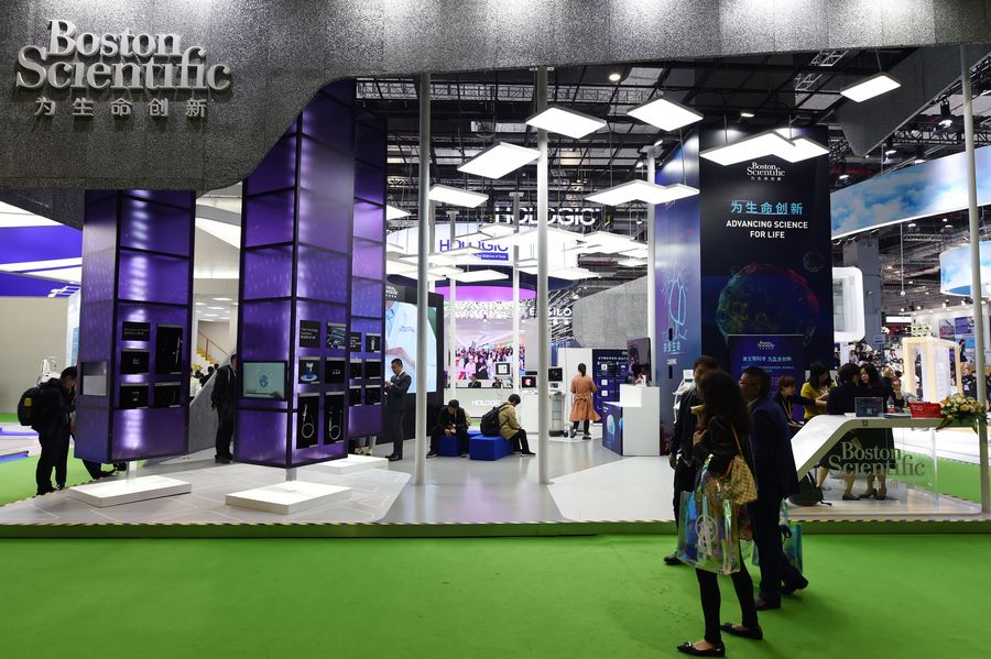 People visit the booth of Boston Scientific during the second China International Import Expo (CIIE) in Shanghai, east China. (Xinhua/Fan Peishen)
