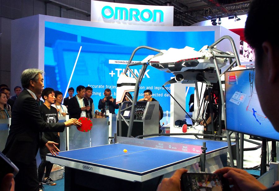 Omron's table tennis robot named Forpheus is seen during the second China International Import Expo (CIIE) in Shanghai, east China. (Xinhua/Chen Fei)