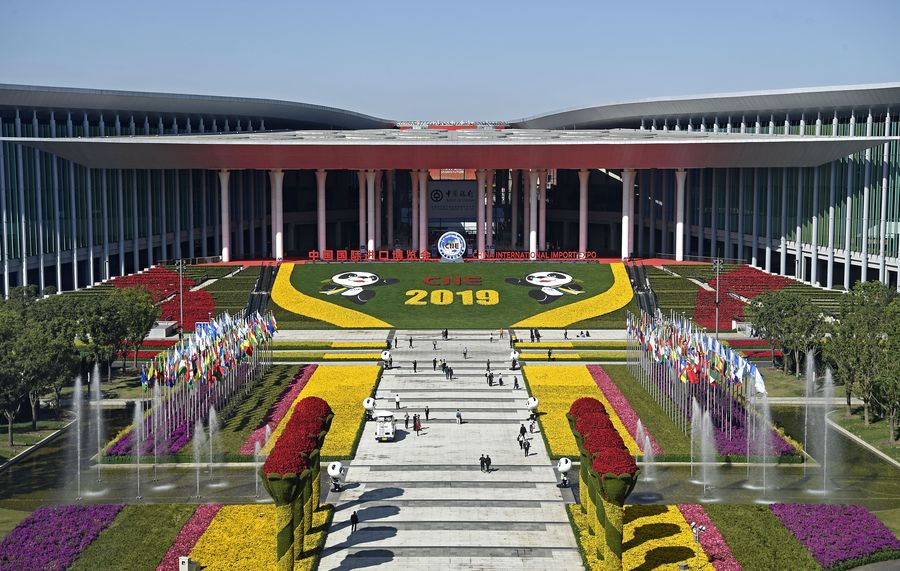 Photo taken on Nov. 9, 2019 shows the National Exhibition and Convention Center in Shanghai, east China, where the second China International Import Expo (CIIE) is being held from Nov. 5 to Nov. 10. (Xinhua/Wang Peng)