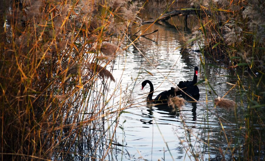 Photo taken on Nov. 18, 2019 shows swans at the Jixi national wetland, located in western Jinan, east China's Shandong Province.(Xinhua/Wang Kai)■