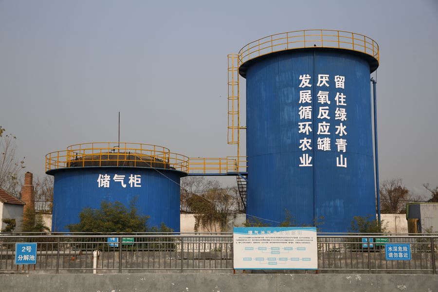 Photo taken on Nov. 28, 2019 shows the swine waste treatment equipment at Henan Kanglong Industrial Group in Baofeng County, central China's Henan Province. (Photo by He Wuchang/Xinhua)