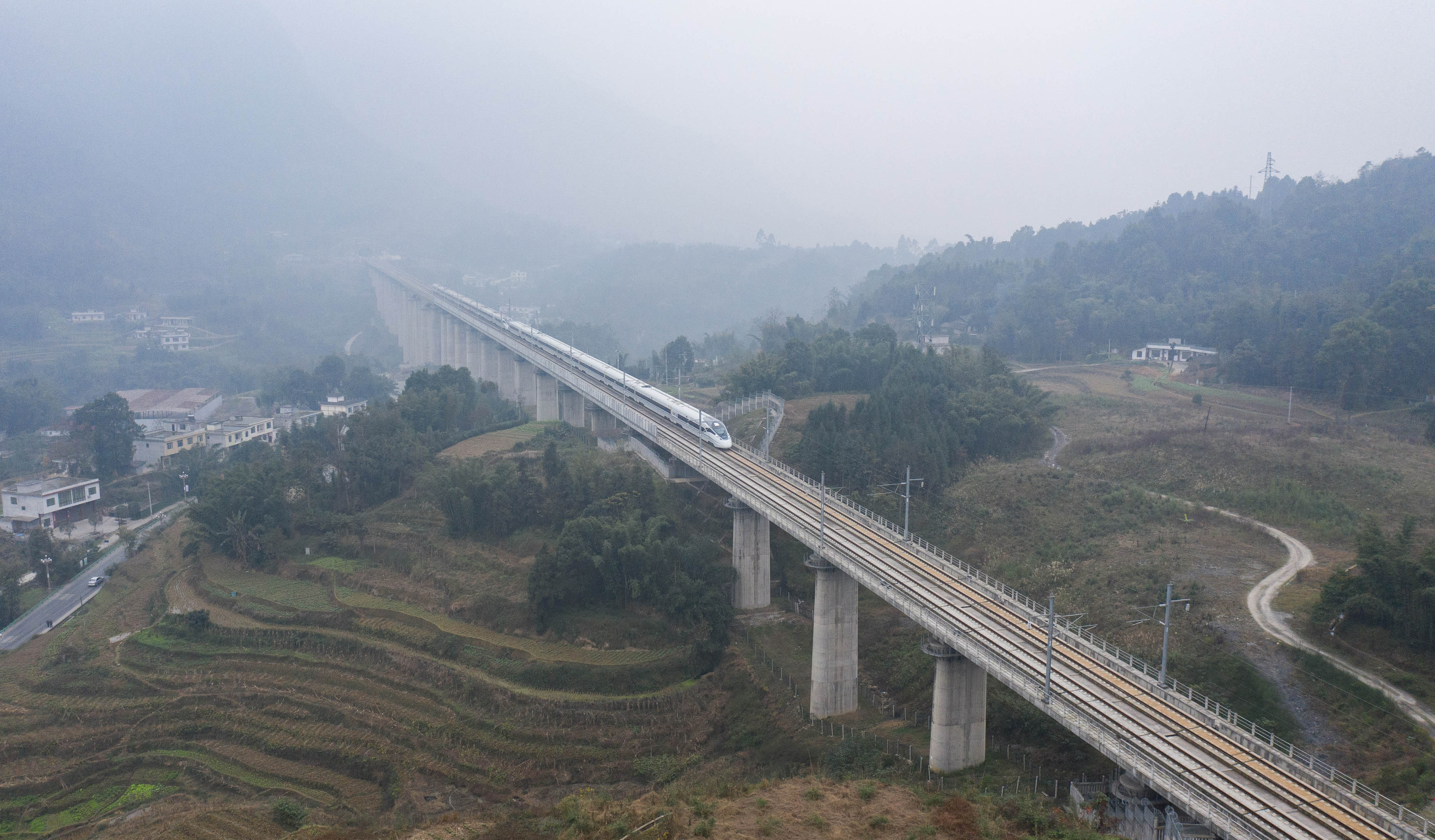 The rail line links Guiyang and Chengdu, two transport hubs in southwest China, providing vast numbers of passengers in the region with a speedy pathway to eastern and southern coastal regions, said Li Yi, a main designer of the railway with China Railway Eryuan Engineering Group.