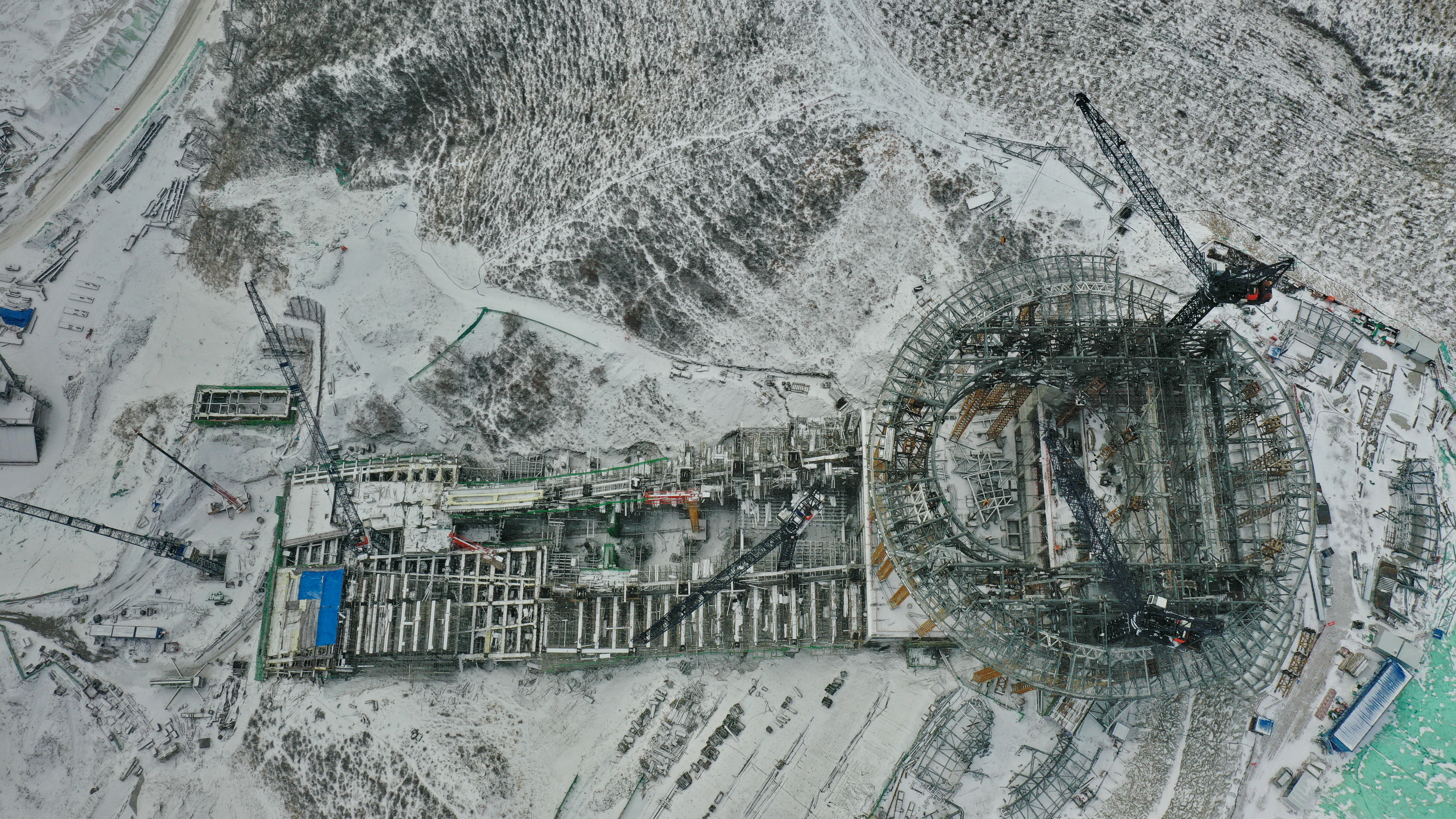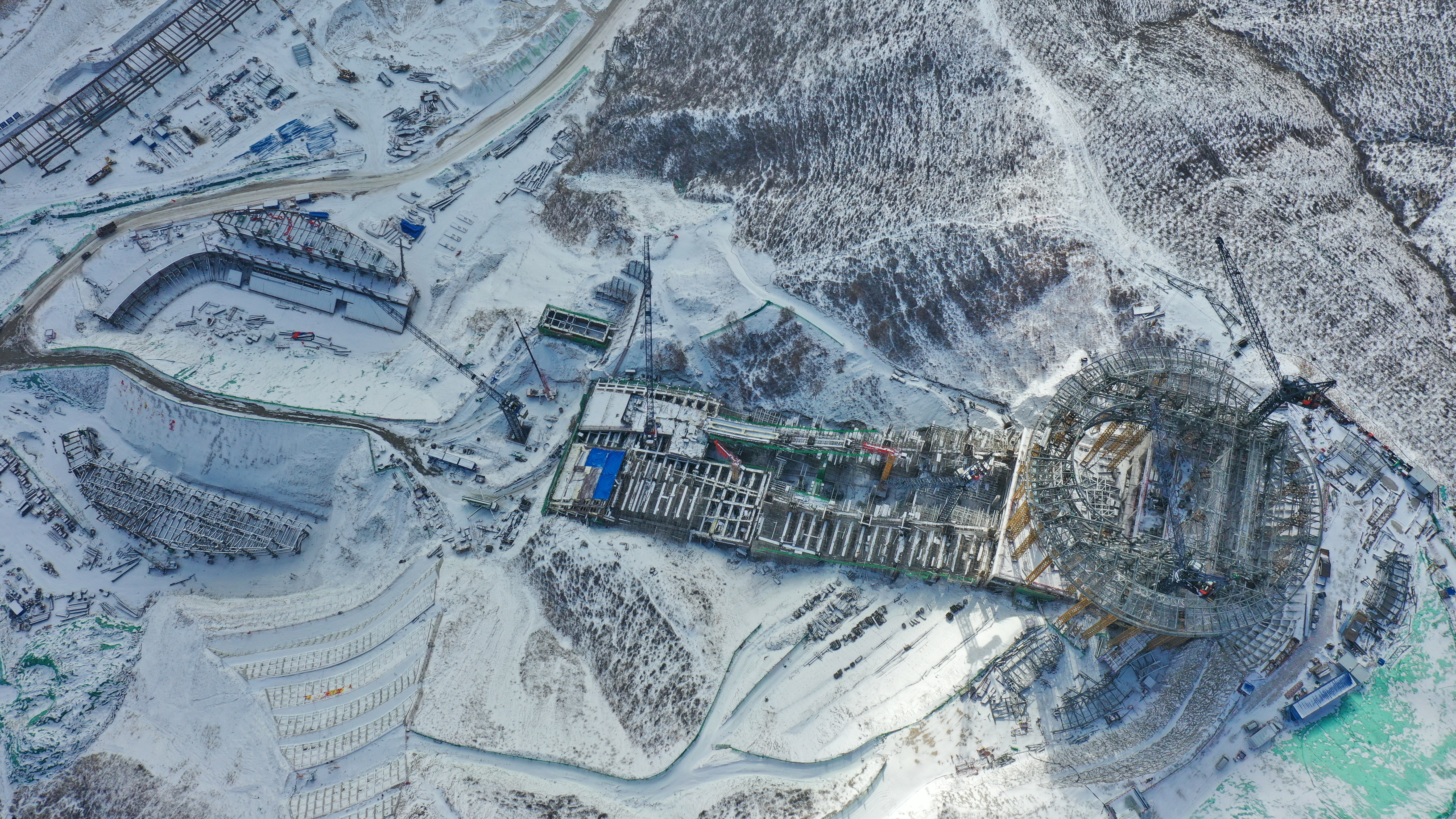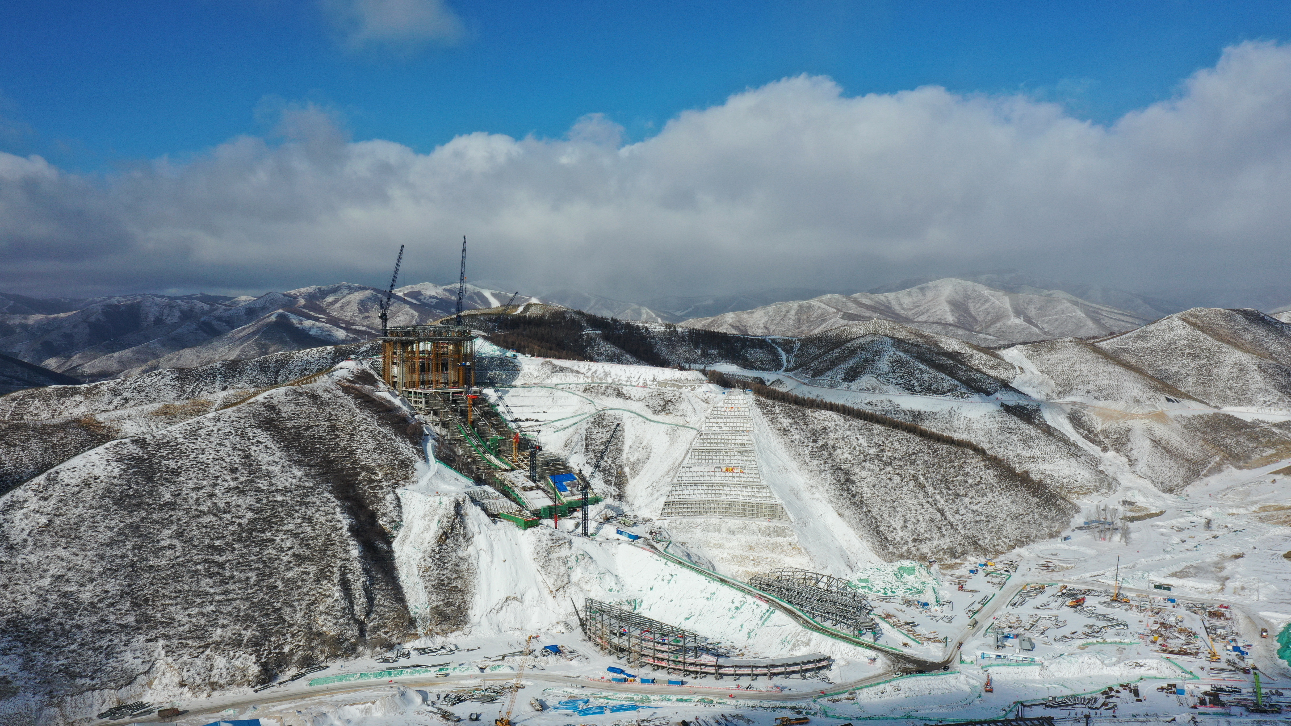 An aerial photo taken with a drone on Dec. 10, 2019 shows the venue for ski jumping competition at the 2022 Beijing Winter Olympic Games in Chongli, north China's Hebei Province.(Xinhua/Yang Shiyao)