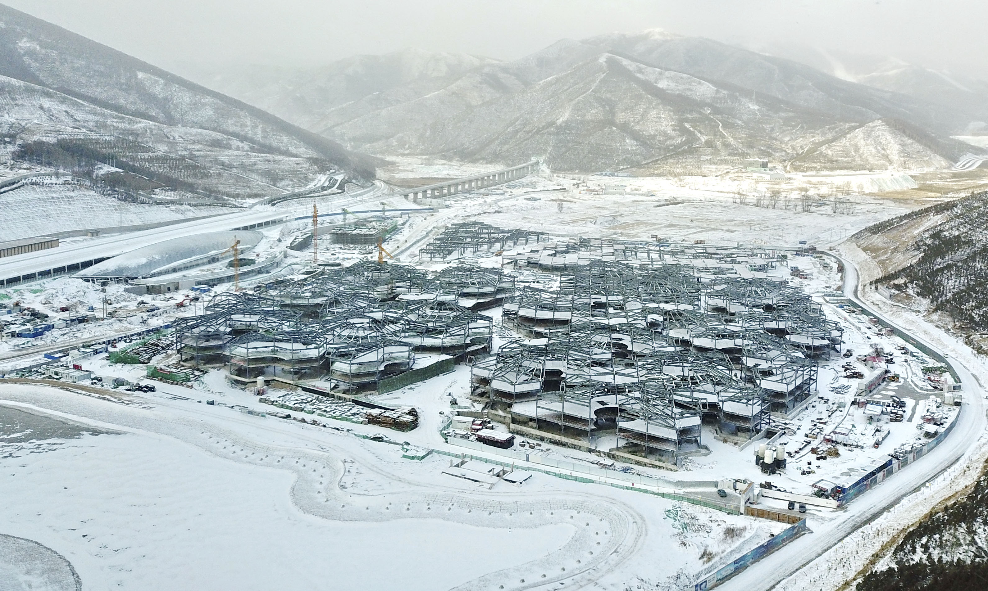 An aerial photo taken with a drone on Dec. 10, 2019 shows Zhangjiakou Winter Olympic Village in Chongli, north China's Hebei Province. (Xinhua/Yang Shiyao)
