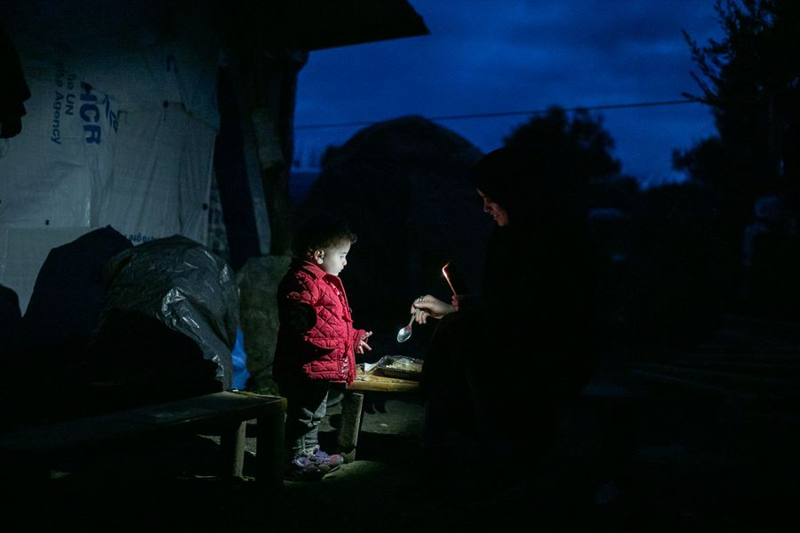 A woman feeds her child at Vial refugee camp of Chios, Greece, on Dec. 23, 2019. Some 90,000 refugees and migrants are currently stranded in Greece, including 34,700 on islands, according to the latest official data from Greek authorities. (Photo by Lefteris Partsalis/Xinhua)