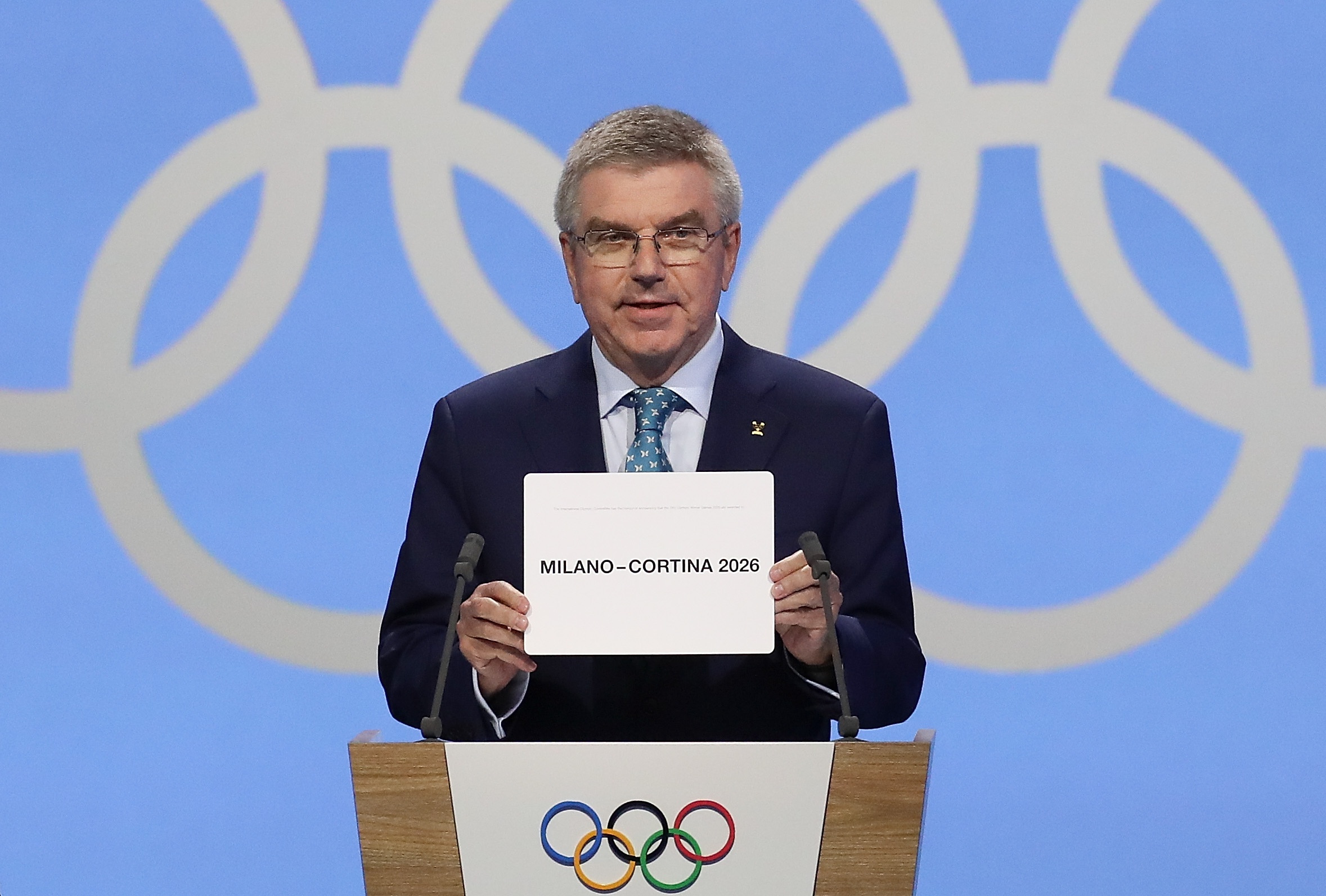 Italian cities Milan and Cortina d'Ampezzo were appointed hosts of the 2026 Winter Olympic Games at the 134th session of the International Olympic Committee (IOC) on June 24. The Italian cities defeated the rival Swedish bid from Stockholm and Are. (Xinhua/Cao Can)