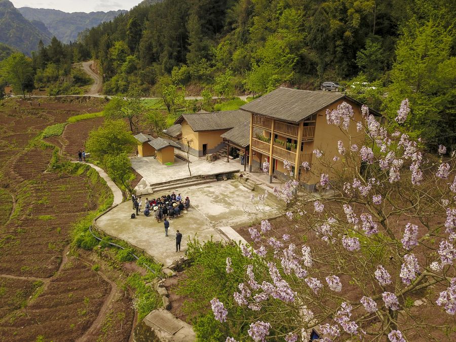 Journalists visit Huaxi Village of Shizhu Tujia Autonomous County, southwest China's Chongqing, April 16, 2019. (Xinhua/Liu Chan)