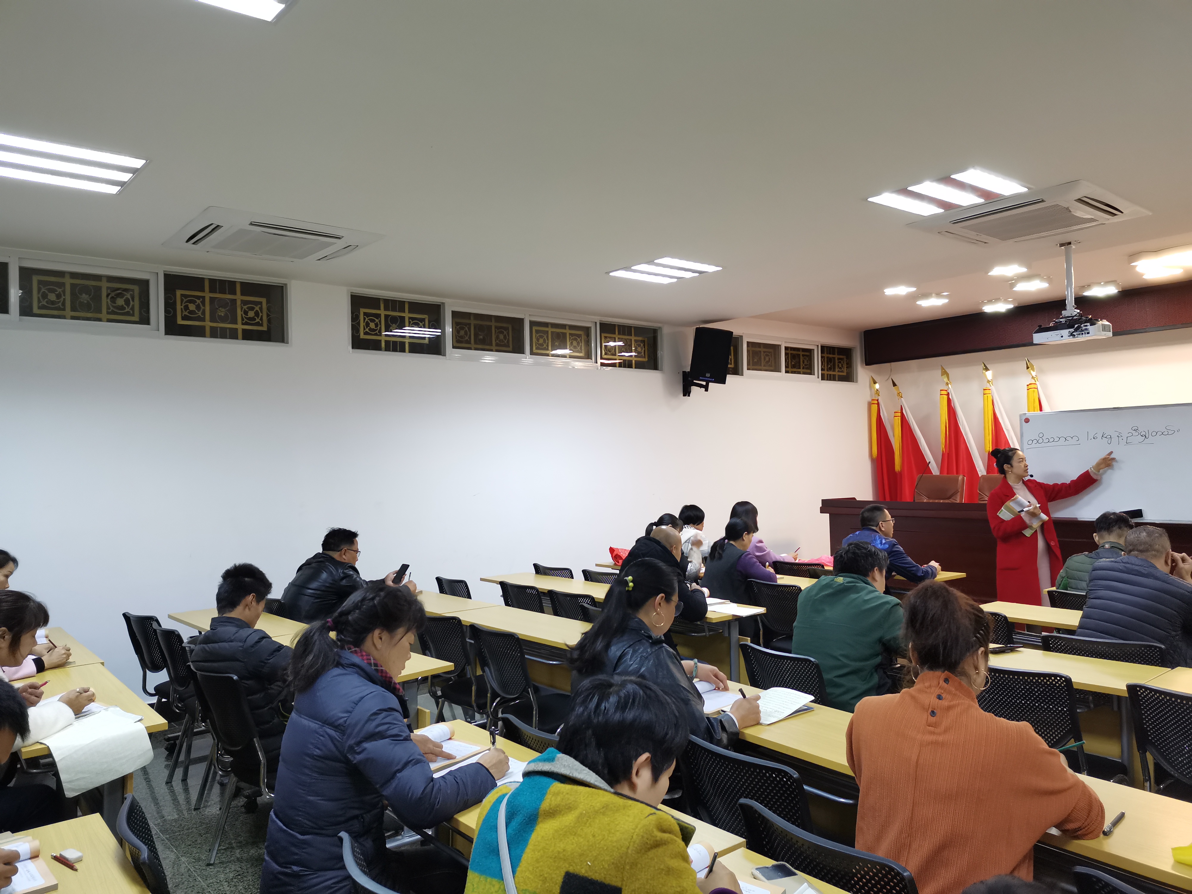 A Chinese woman attends a Myanmar language class in Ruili, southwest China's Yunnan Province, Jan. 1, 2020. (Xinhua/Yao Bing)