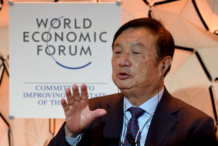 Huawei founder and CEO Ren Zhengfei speaks at a panel discussion during the annual meeting of the World Economic Forum in Davos, Switzerland, Jan. 21, 2020. (Xinhua/Guo Chen)