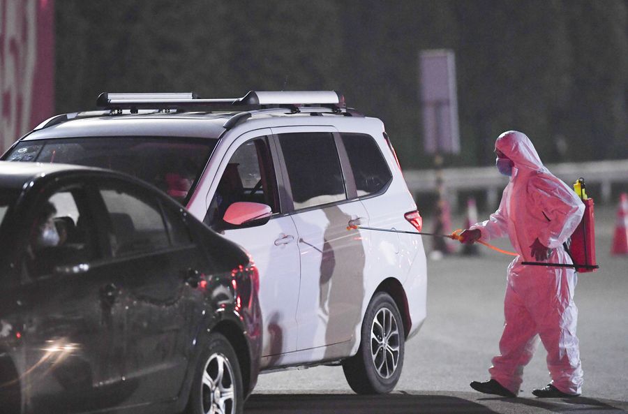 Motorists in east China's Shandong Province, a source of the labor force for many other provincial regions, are required to undergo temperature detection before entering highways.