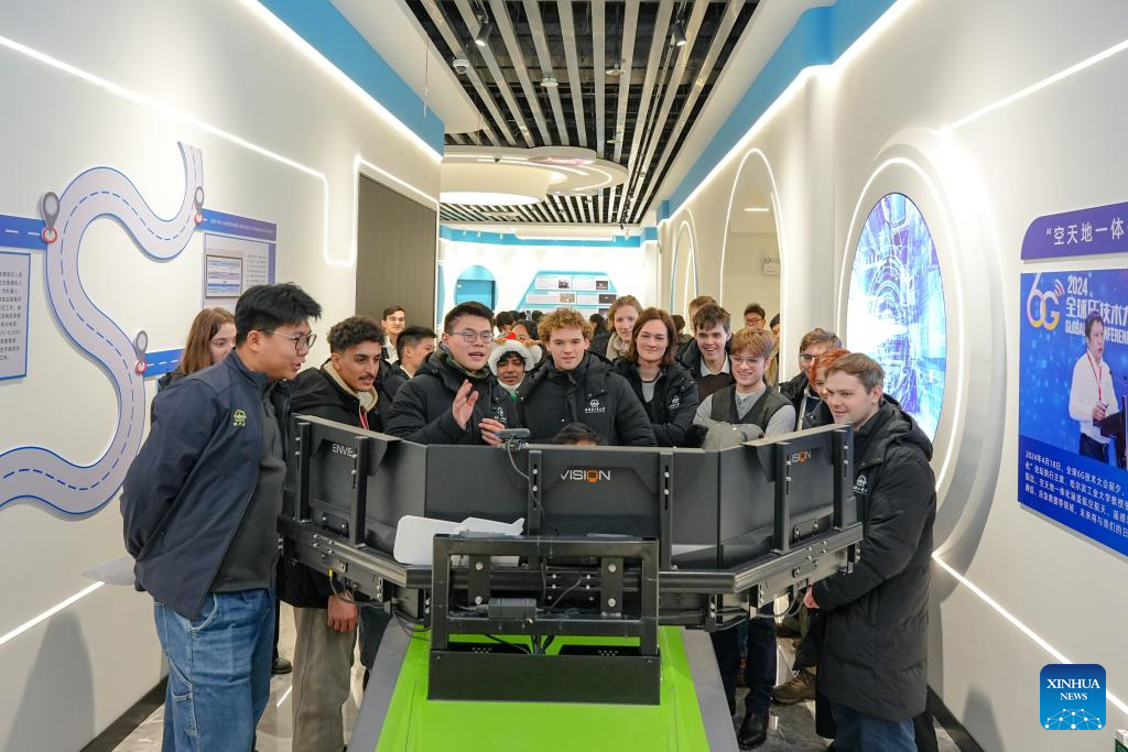 Chinese and British students visit the future transportation international innovation platform of the School of Transportation Science and Engineering of Harbin Institute of Technology (HIT) in Harbin, northeast China's Heilongjiang Province, Jan. 8, 2026. (Harbin Institute of Technology/Handout via Xinhua)