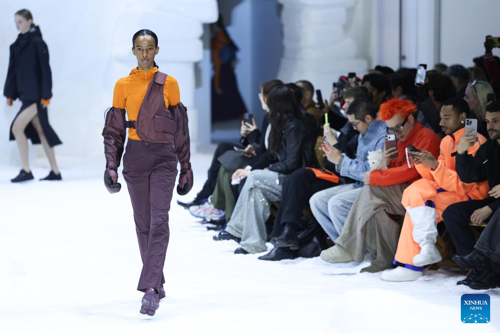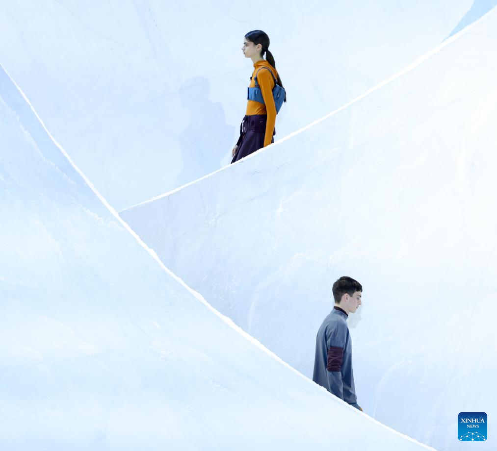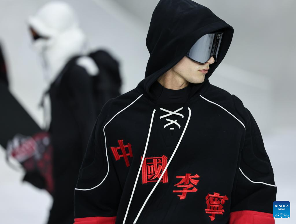 A model presents creations of Fall/Winter 2026 collections of Li-Ning China during the Milan Men's Fashion Week in Milan, Italy, Jan. 16, 2026. (Xinhua/Li Jing)