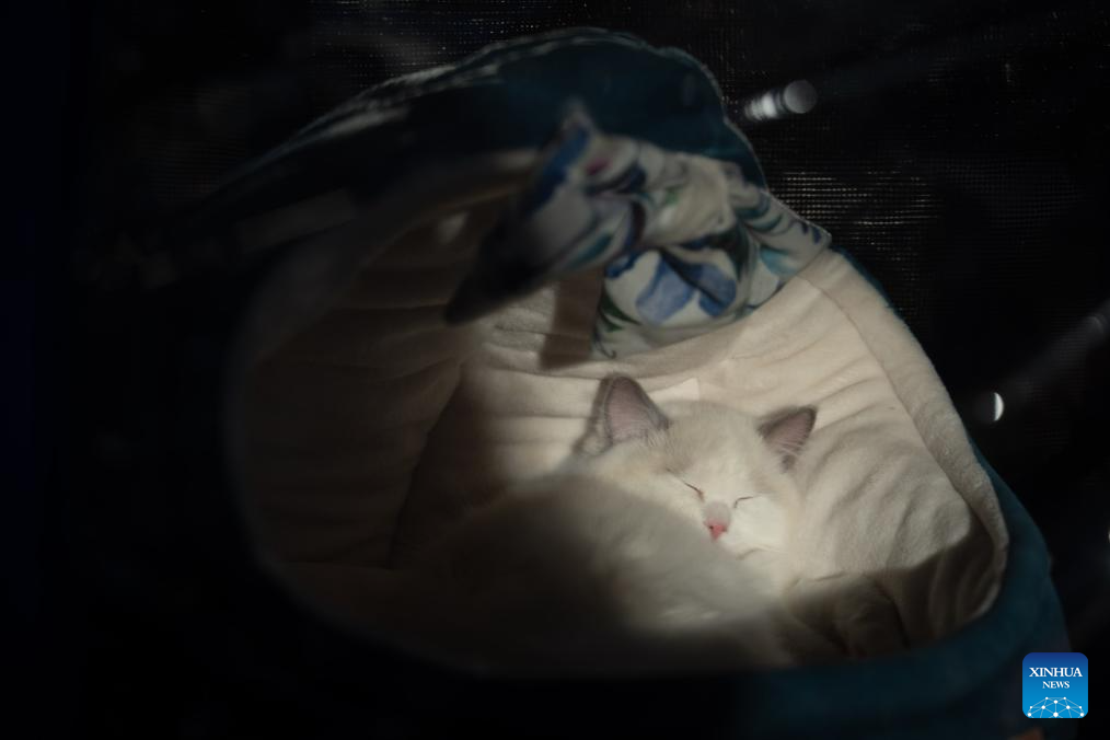 A Ragdoll kitten rests in its bed during an international show of purebred cats in Warsaw, Poland, on Jan. 17, 2026. Around 200 cats of various breeds were showcased at the event organized by Poland's cat fanciers association SMK Jedynka. (Photo by Jaap Arriens/Xinhua)