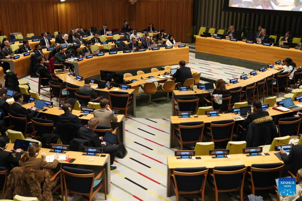The first session of the Preparatory Committee for the UN Conference of Plenipotentiaries on Prevention and Punishment of Crimes against Humanity is held at the UN headquarters in New York, Jan. 19, 2026. (Xinhua/Zhang Fengguo)