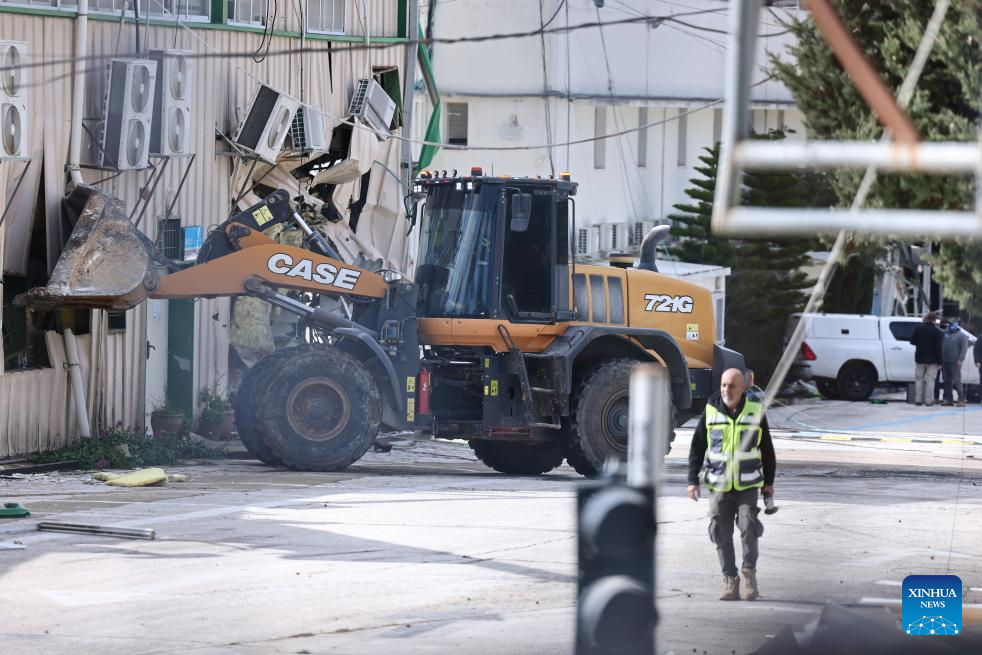 Israeli authorities demolish a building within the East Jerusalem compound of the United Nations Relief and Works Agency for Palestine Refugees (UNRWA), Jan. 20, 2026. Israeli authorities on Tuesday demolished several buildings within the East Jerusalem compound of the UNRWA, an action that drew immediate and sharp condemnation from the UN body.