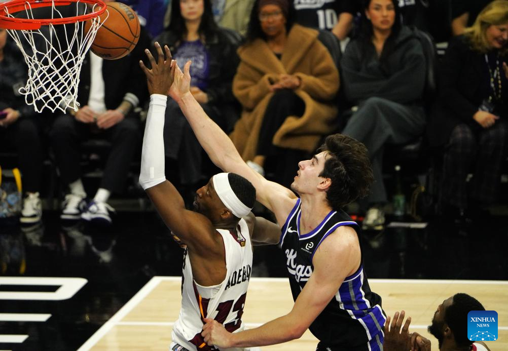 Sacramento Kings' Maxime Raynaud (R) competes during the 2025-2026 NBA regular season basketball game between Miami Heats and Sacramento Kings in Sacramento, the United States, Jan. 20, 2026. (Xinhua/Wu Xiaoling)