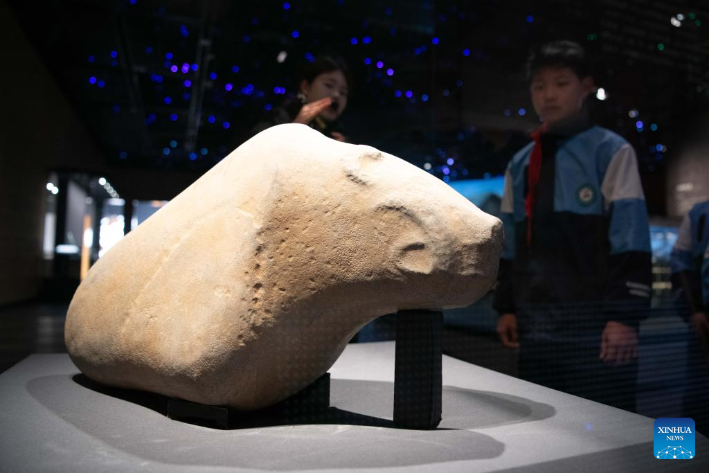 Students visit the Lingjiatan Site Museum in Hanshan County, Ma'anshan, east China's Anhui Province, Jan. 13, 2026. Dating back some 5,300 to 5,800 years, the Lingjiatan relic site in east China's Anhui was discovered in 1985. It is known for the jadeware unearthed there. The findings include jade artifacts in various shapes, offering a peek into the spirits and aesthetics of a prehistoric Chinese jade culture. (Xinhua/Zhang Duan)