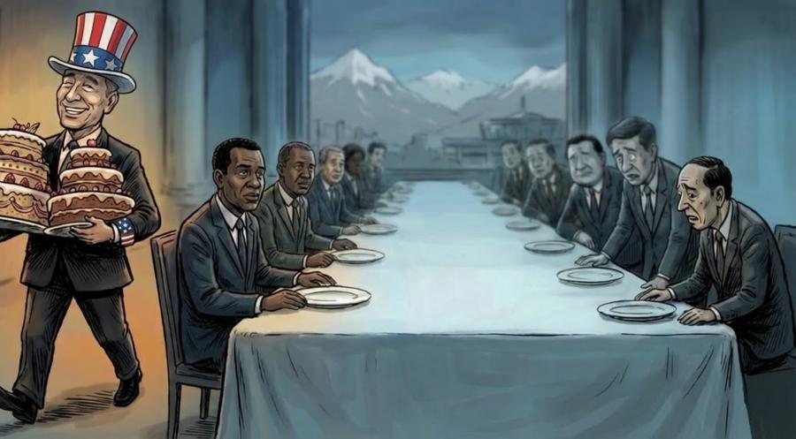 The cake is for sharing, but somebody wants to grab it all.