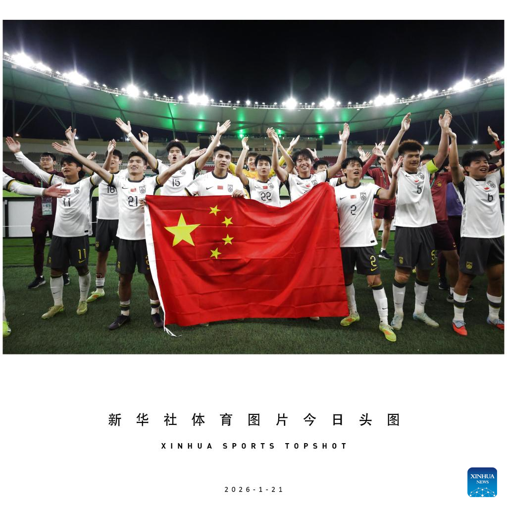 Players of China celebrate after winning the 2026 AFC U23 Asian Cup semifinal match between China and Vietnam in Jeddah, Saudi Arabia, Jan. 20, 2026. (Xinhua/Wang Haizhou)