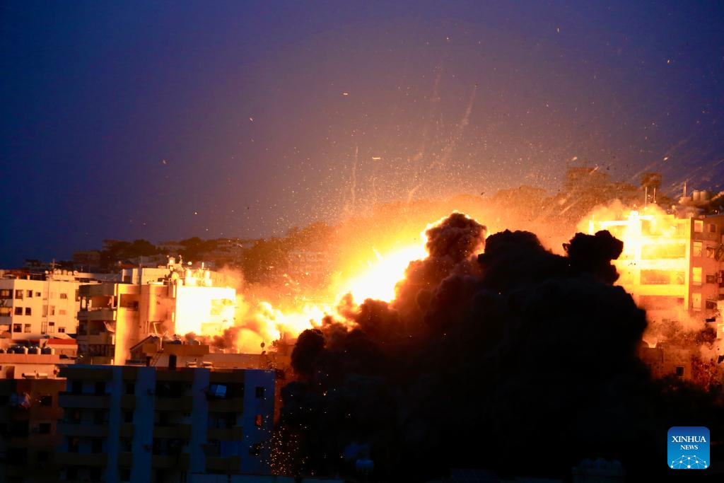 Photo taken on Jan. 21, 2026 shows explosions during Israeli airstrikes in Qennarit, near Sidon, southern Lebanon. Israeli airstrikes injured 19 people in southern Lebanon on Wednesday, including eight journalists, according to Lebanon's Ministry of Public Health. (Photo by Ali Hashisho/Xinhua)