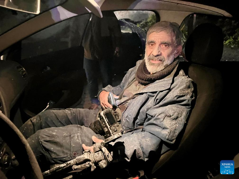 Photo taken on Jan. 21, 2026 shows a photographer involved in the Israeli raid in Qennarit, near Sidon, southern Lebanon. Israeli airstrikes injured 19 people in southern Lebanon on Wednesday, including eight journalists, according to Lebanon's Ministry of Public Health. (Photo by Ali Hashisho/Xinhua)