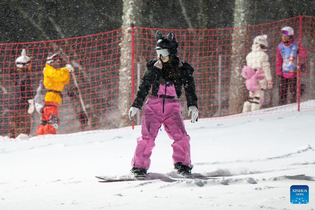 A tourist skies at a ski resort in Shennongjia Forestry District, central China's Hubei Province, Jan. 20, 2026. In recent years, Hubei Province has leveraged its strategic location as a transportation hub connecting nine provinces, tapping into its unique ice and snow resources to vigorously develop the ice and snow tourism industry. Multiple locations in Hubei have become well-known ice and snow tourism destinations, attracting numerous tourists to experience the joys of winter sports. (Xinhua/Du Zixuan)