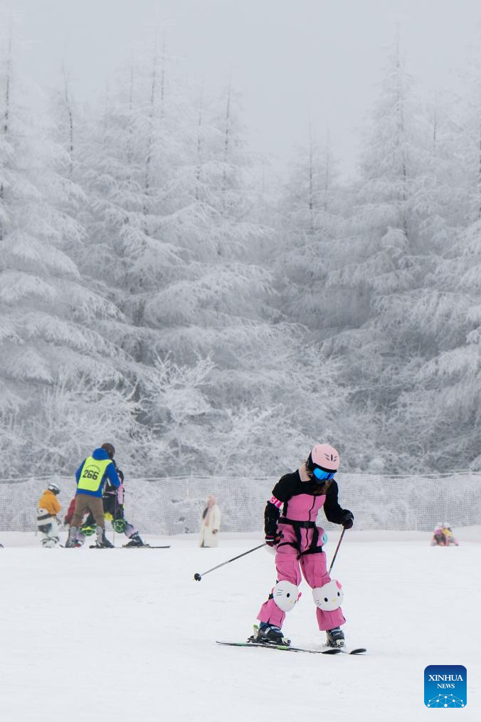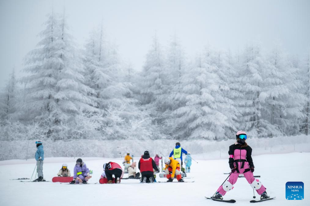 Tourists ski at a ski resort in Shennongjia Forestry District, central China's Hubei Province, Jan. 20, 2026. In recent years, Hubei Province has leveraged its strategic location as a transportation hub connecting nine provinces, tapping into its unique ice and snow resources to vigorously develop the ice and snow tourism industry. Multiple locations in Hubei have become well-known ice and snow tourism destinations, attracting numerous tourists to experience the joys of winter sports. (Xinhua/Du Zixuan)
