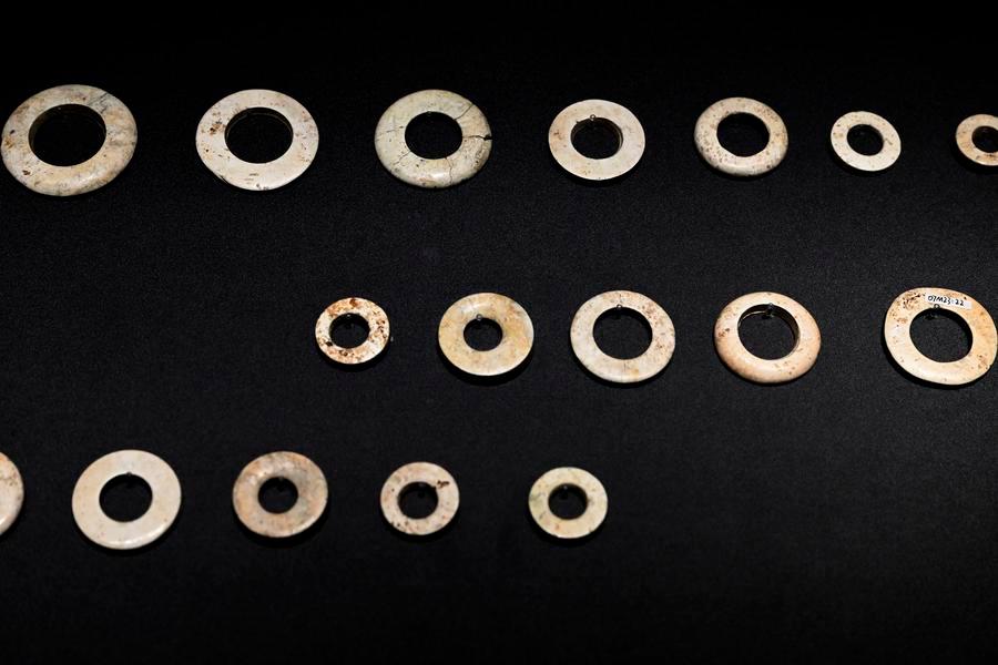 MA'ANSHAN, Jan. 22, 2026 (Xinhua) -- Dating back some 5,300 to 5,800 years, the Lingjiatan relic site in east China's Anhui was discovered in 1985. It is known for the jadeware unearthed there. The findings include jade artifacts in various shapes, offering a peek into the spirits and aesthetics of a prehistoric Chinese jade culture.