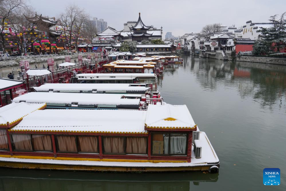 This photo taken on Jan. 20, 2026 shows a view of the snow scenery at the Fuzi (Confucius) Temple scenic area in Nanjing, east China's Jiangsu Province. Regarding widespread snowfall and temperature drops in various regions across China, measures have been taken to actively respond to these weather conditions. (Xinhua/Li Bo)