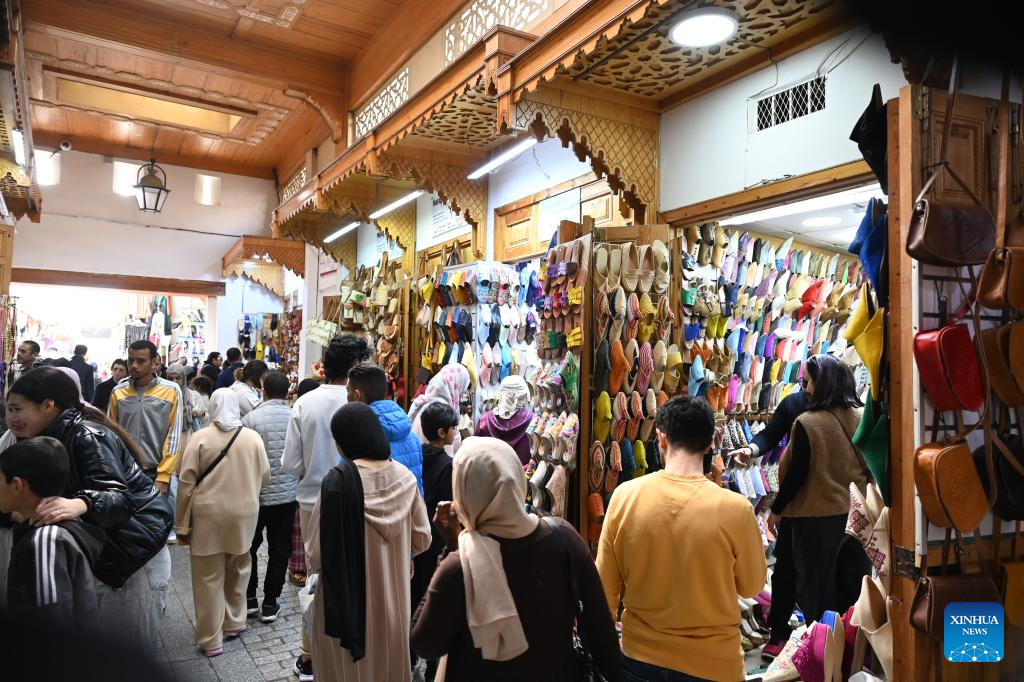 Residents shop for traditional Moroccan shoes and clothing at a local market in Rabat, Morocco, on March 19, 2026. (Photo by Aissa/Xinhua)