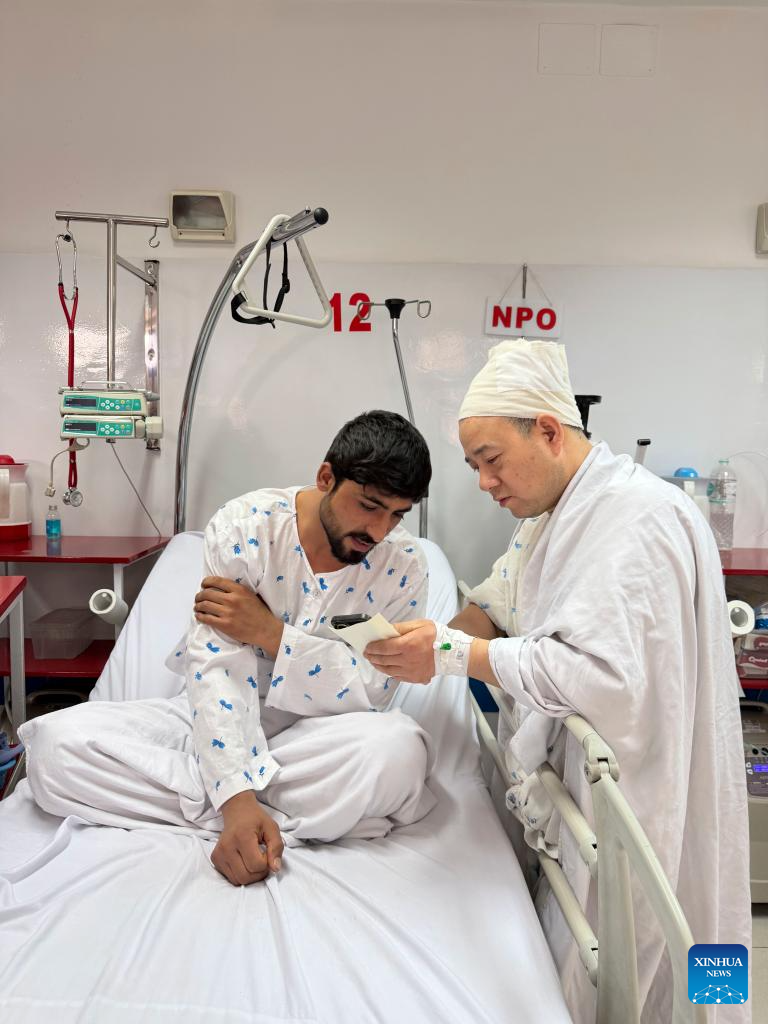This photo taken with a mobile photo on Jan. 20, 2026 shows a Chinese citizen who got injured during a blast receiving treatment at an emergency center in Kabul, Afghanistan. At least 20 people, including women and children, were transported to EMERGENCY's Surgical Center in Kabul following an explosion in the downtown area on Monday afternoon, with seven declared dead on arrival, the humanitarian organization said. According to media reports, the Islamic State has claimed responsibility for the incident. (Xinhua/Li Ang)