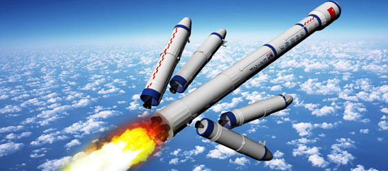 The graphics shows the launch procedures of the carrier rocket of Tiangong-1 space lab module, Long March-2FT1 on Sept. 29, 2011.