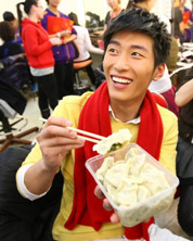 周冬雨竇驍春晚后臺(tái)吃餃子