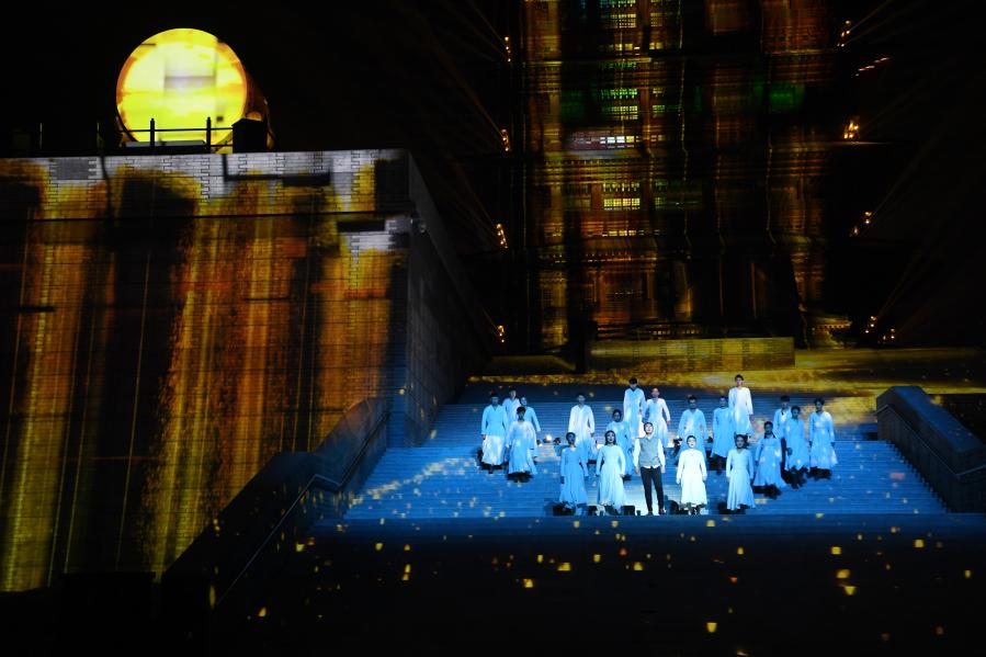 元旦期間,位于甘肅省蘭州市七里河區(qū)的蘭州黃河樓景區(qū)上演《大有蘭州》光影秀,表演分為“源之大河”“金之大城”“民之大韻”“蘭之大州”四個(gè)主題篇章,讓游客在黃河之濱感悟黃河文化。